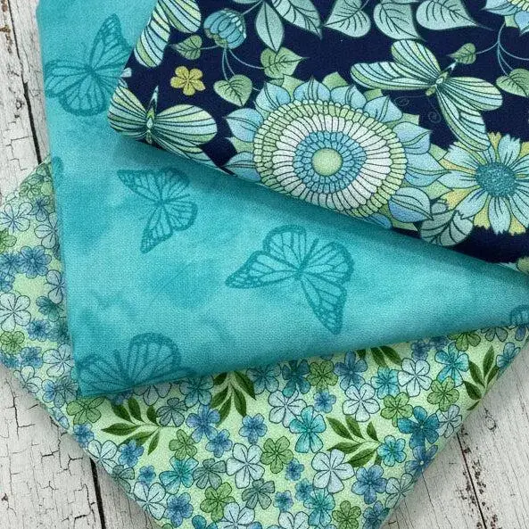 Butterfly Calypso 3 Yard Bundle – Benartex Fabrics | Teal, Blue & Green Butterfly and Floral Prints