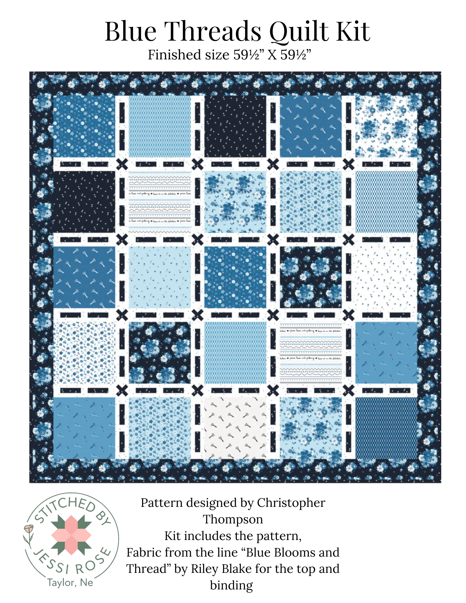 Blue Threads Quilt Kit – Blue Blooms and Threads by Riley Blake – 59½” x 59½” Throw Quilt Kit