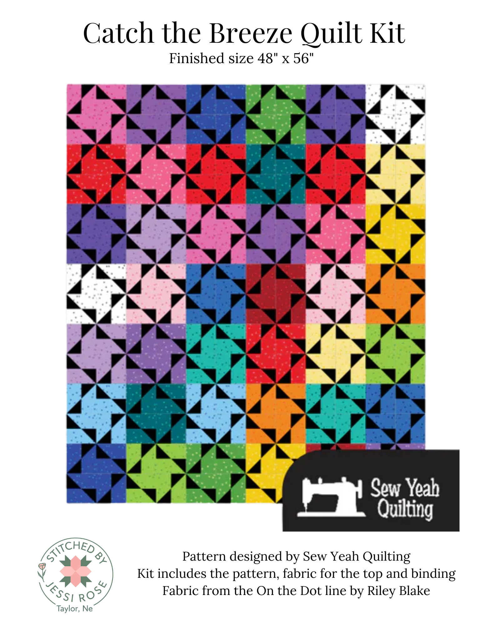 Catch the Breeze Quilt Kit – 48” x 56” Colorful Modern Quilt Kit with Pattern