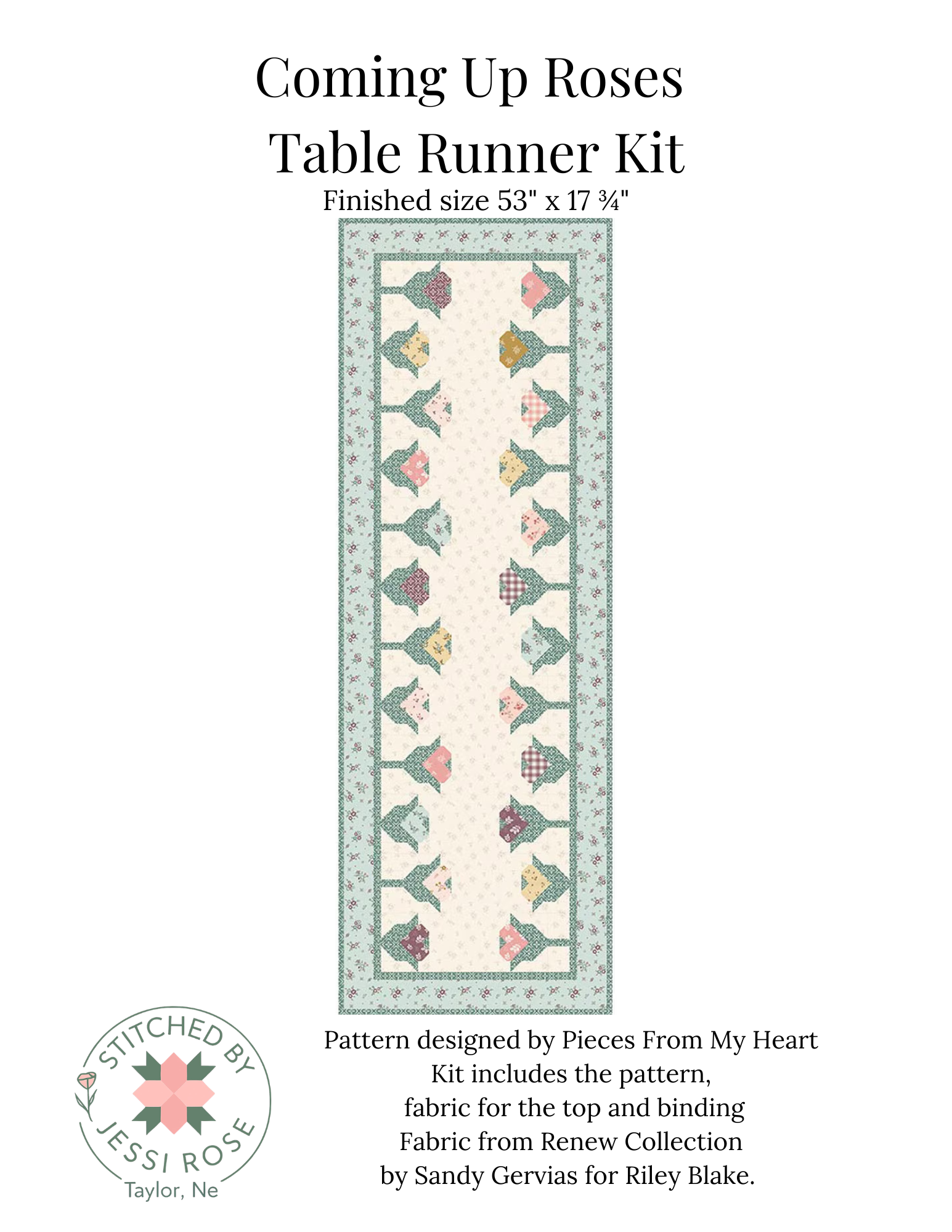 Coming Up Roses Table Runner Kit – 53" x 17¾" – Renew Collection by Sandy Gervais – Riley Blake – Pattern + Top & Binding Included