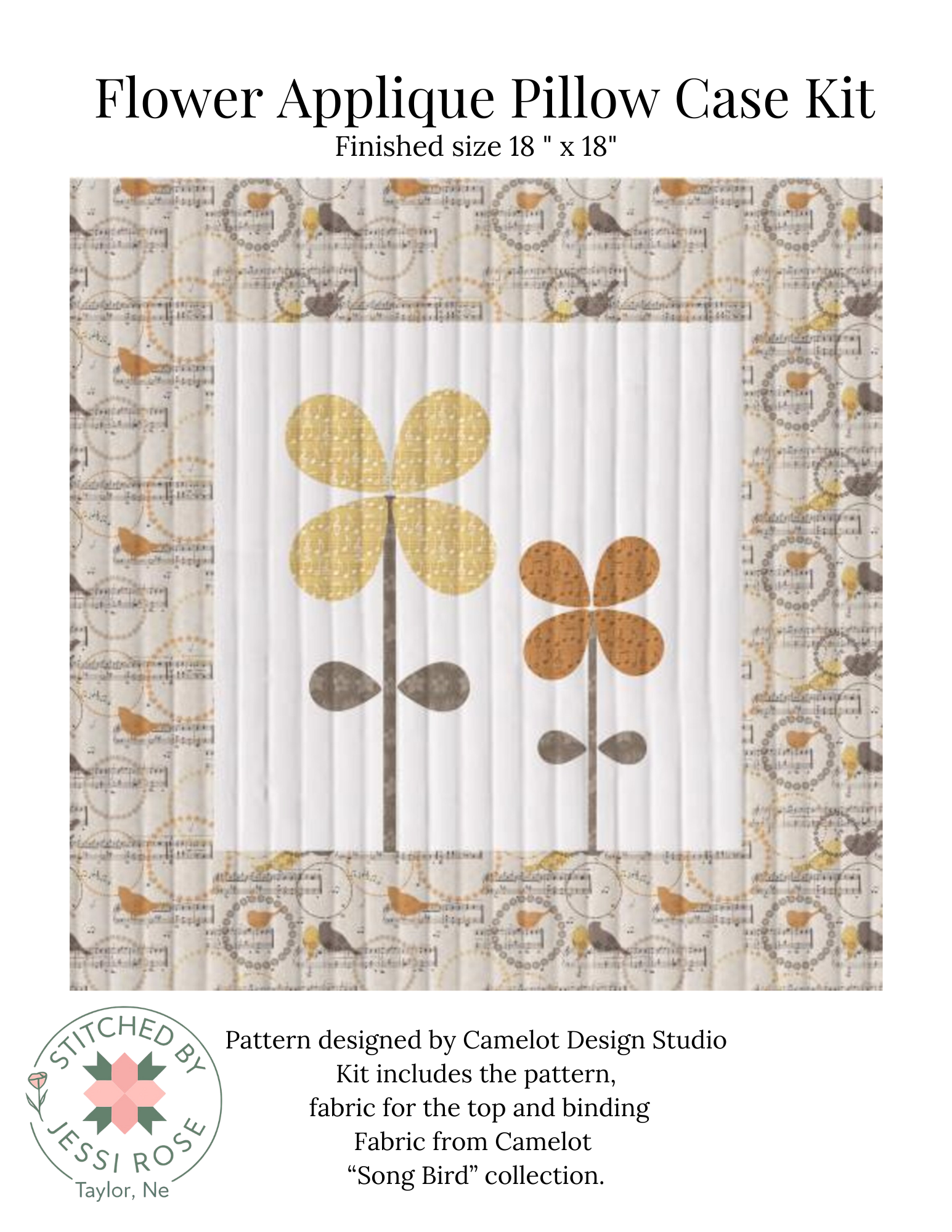 Flower Applique Pillow Case Kit – 18” x 18” – Camelot Song Bird Fabric – Includes Pattern & Binding