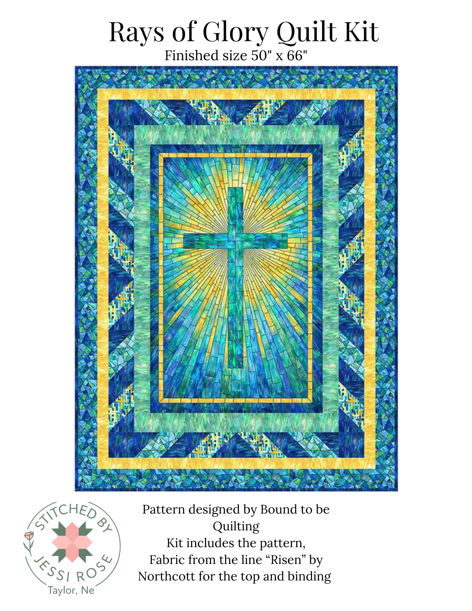 Rays of Glory Quilt Kit - Risen by Northcott- 50” x 60” Christian Cross Quilt Kit - Stained Glass Style Quilt - Complete Quilt Top Kit