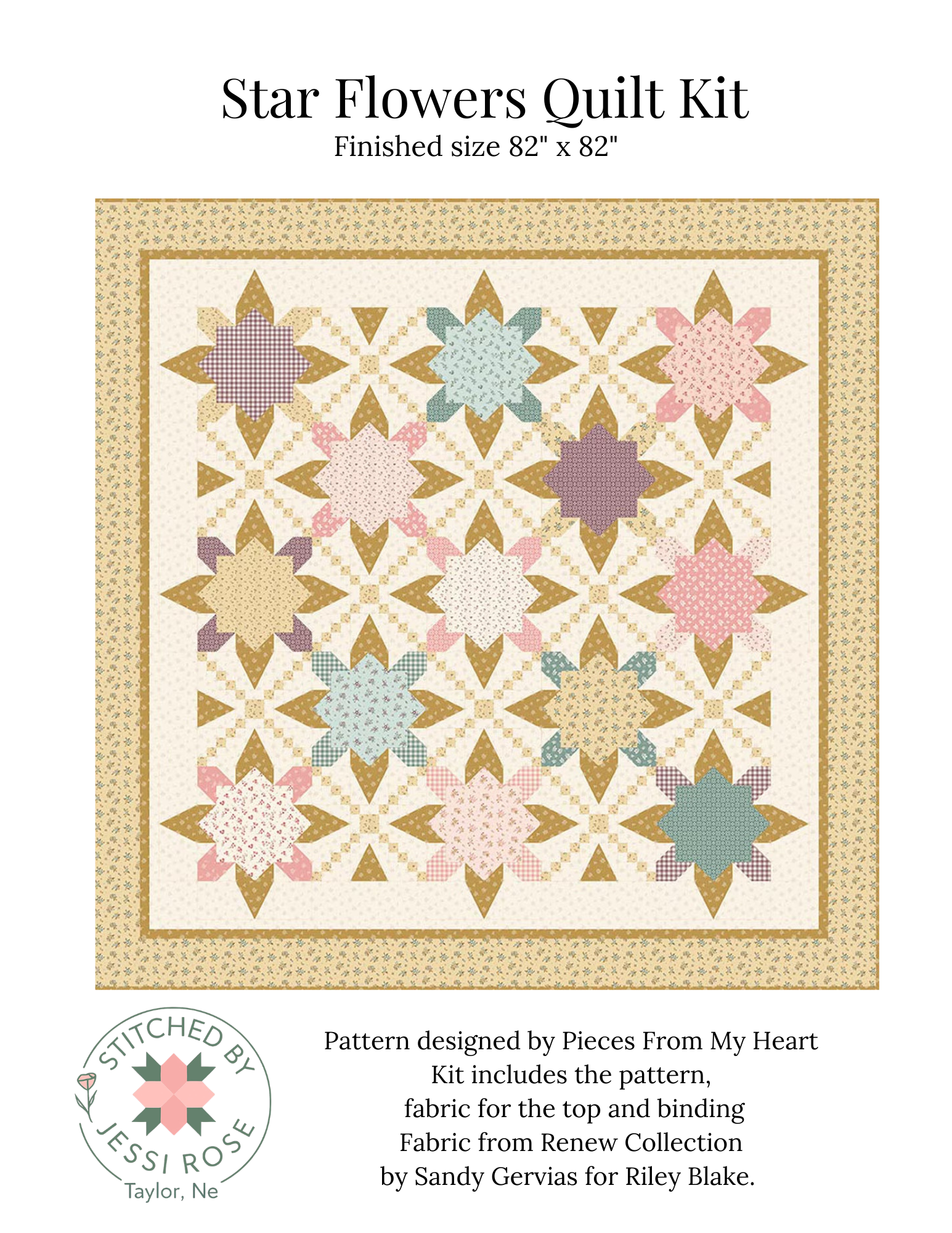 Star Flowers Quilt Kit – 82" x 82" – Renew Collection by Sandy Gervais – Riley Blake – Complete Quilt Top & Binding Kit