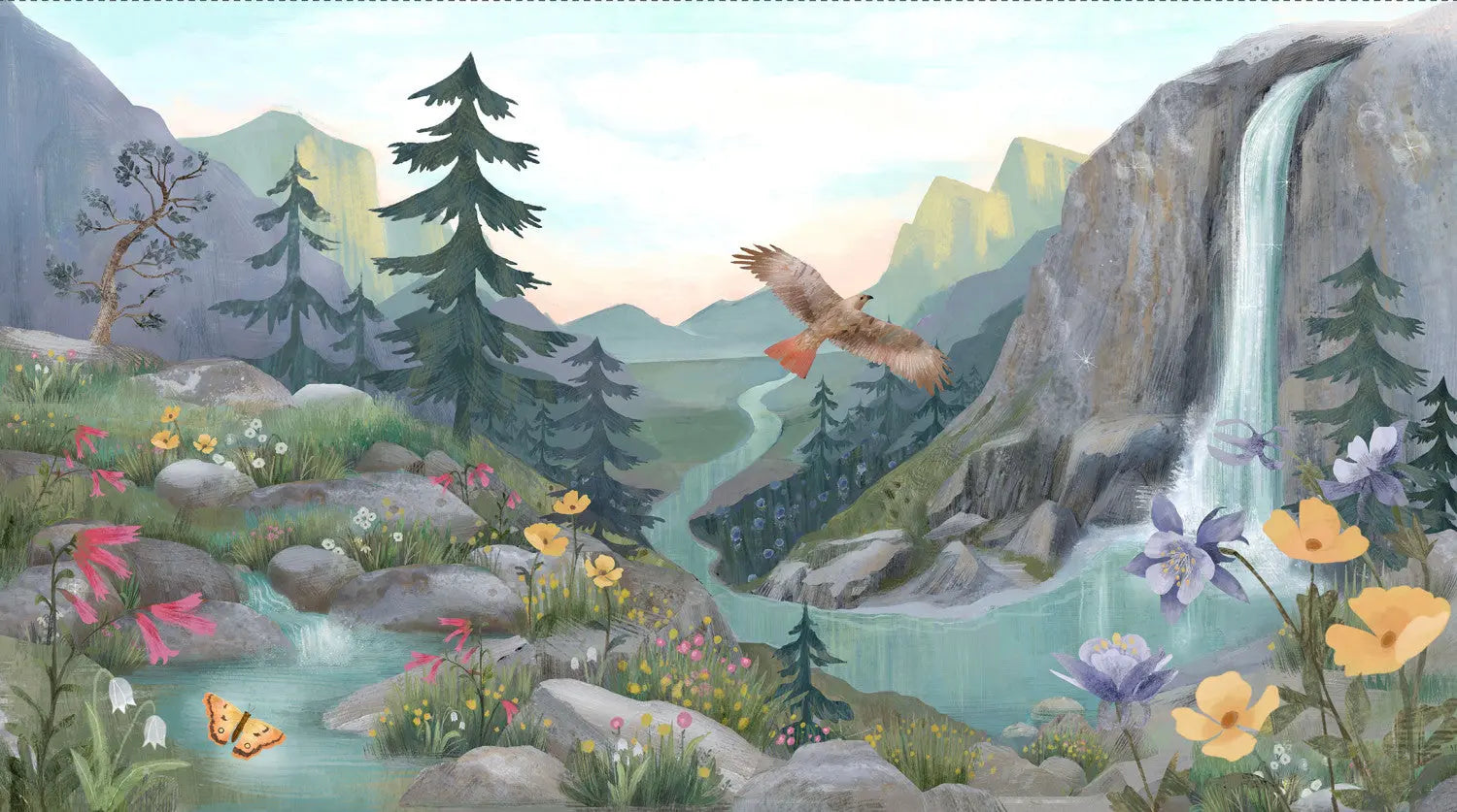 Serenity Waterfall Mountain Scene panel by Clothworks - 24" x 44" 2801
