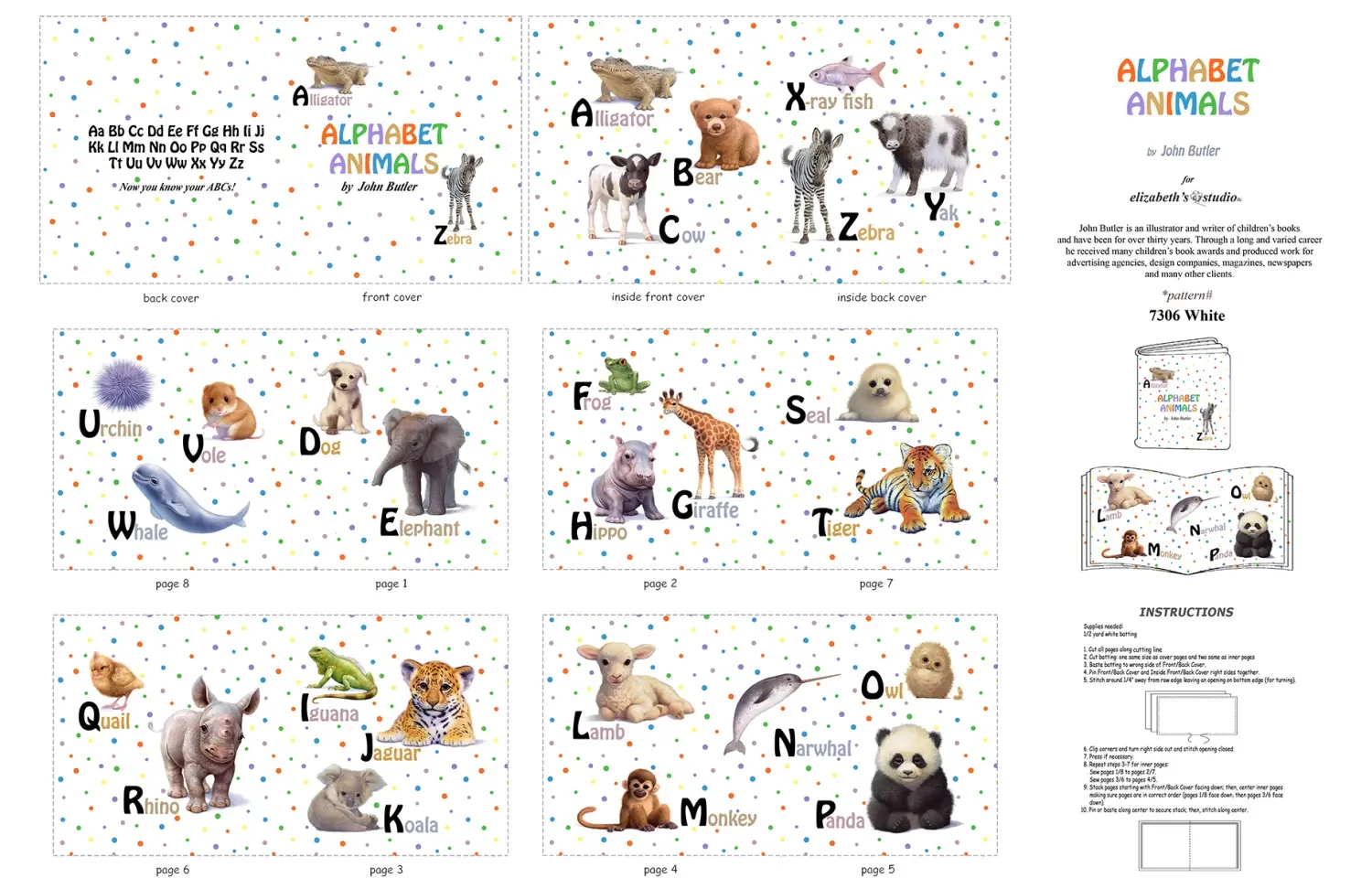 Animal Friends ABCs Fabric Book Panel by Elizabeth's Studio - 36" x 43" 6908