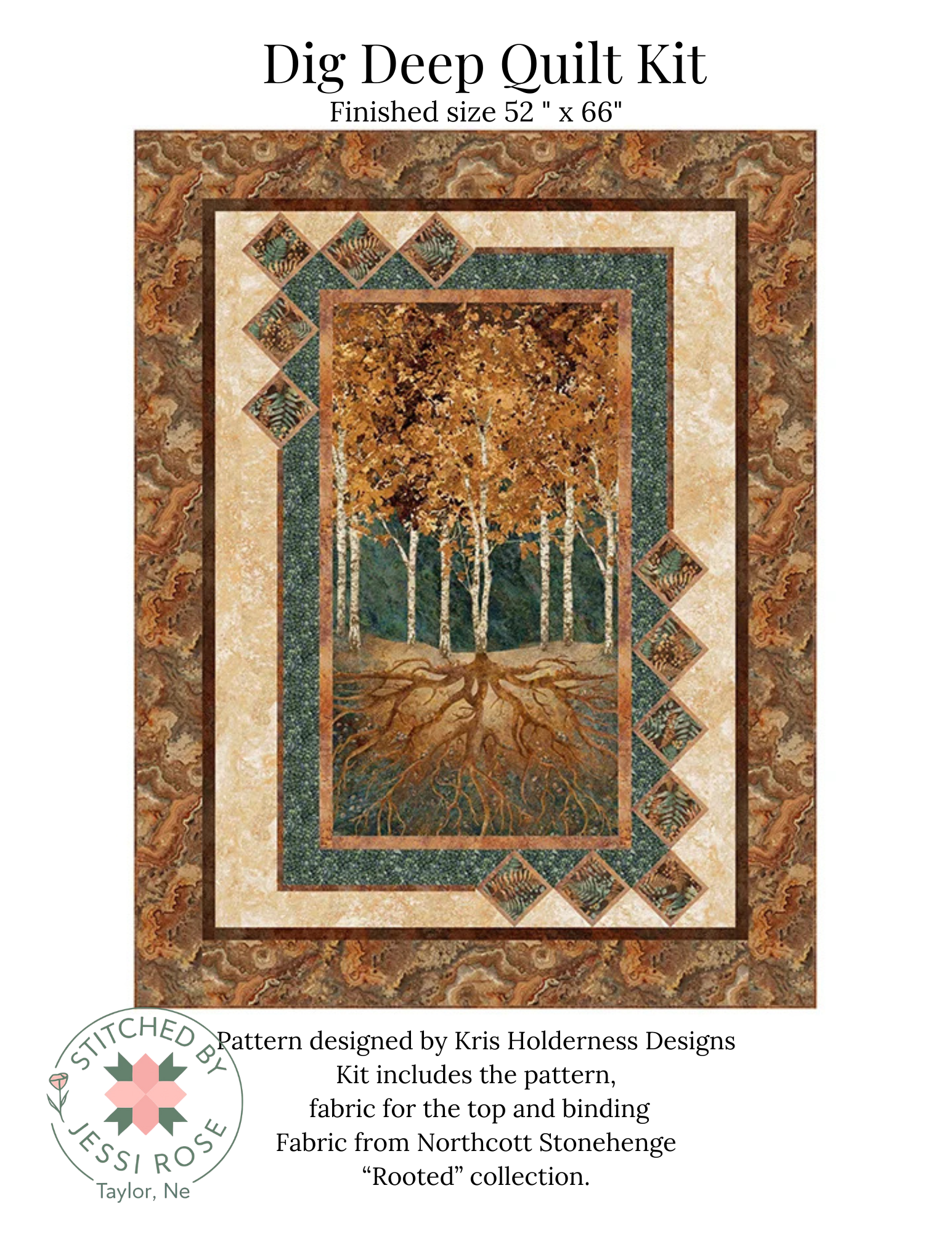 Dig Deep Quilt Kit – Finished 52” x 66” – Northcott Stonehenge Rooted – Includes Pattern & Binding