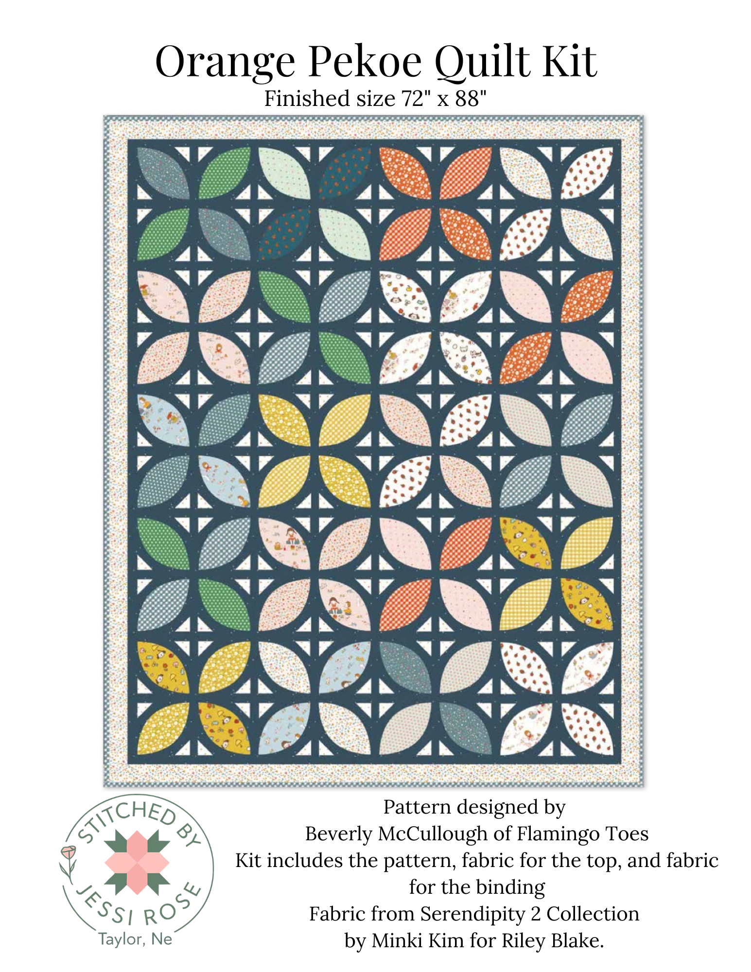 Orange Pekoe Quilt Kit – Serendipity 2 Fabric by Minki Kim – Riley Blake Quilt Kit – 72x88 Quilt – Beverly McCullough Pattern – Flower Quilt Kit