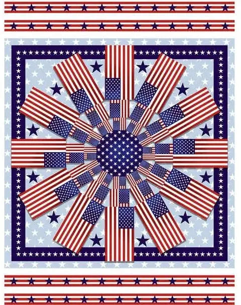 American Style Flag Windmill by Studio E fabric quilt panel - 36" x 43"