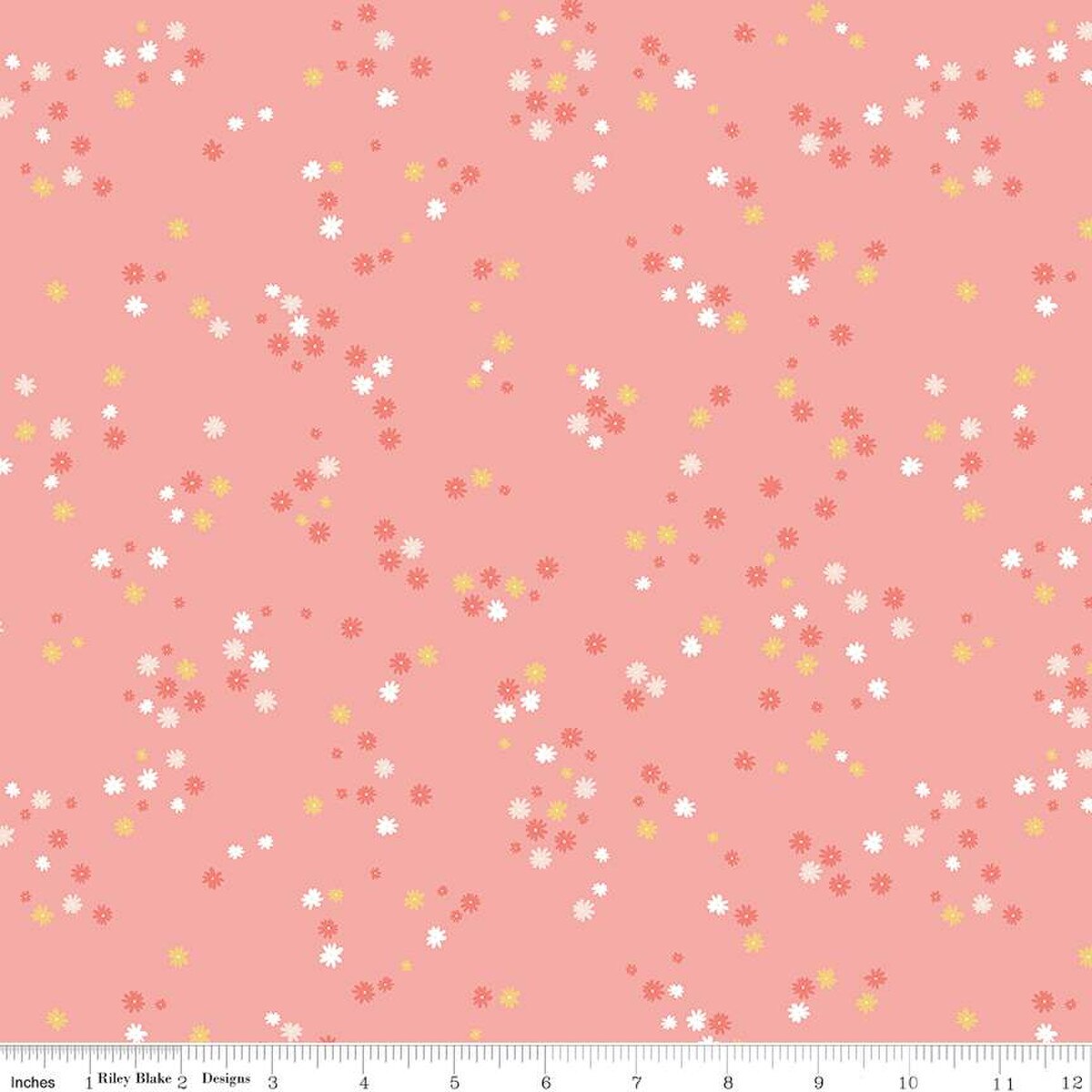 Between the Pages in Flowers Coral by Riley Blake Designs is a lively and cheerful print featuring a scattered mix of dainty floral bursts in white, yellow, and blush across a warm coral background. This playful design adds a fresh pop of color and charm, making it perfect for springtime quilts, cheerful accents, and coordinating pieces. Use it as a vibrant blender or let it shine as a feature fabric in your next creative project.