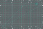 The Creative Grids 12" x 18" self-healing cutting mat is a premium tool designed to make cutting fabric precise, efficient, and safe. One side features a simple grid layout for general cutting, with clearly marked 1-inch squares and diagonal lines to assist with bias cutting and angled measurements. The reverse side includes additional markings, such as 1/8-yard, 1/4-yard, and 1/3-yard measurements, making it easy to cut fabric in common yardage increments for quilt patterns. Both sides are designed with contrasting teal lines that stand out on the dark, durable surface. Crafted with a self-healing surface, this mat is built to withstand the repeated use of rotary cutters and craft knives while maintaining its smooth finish.