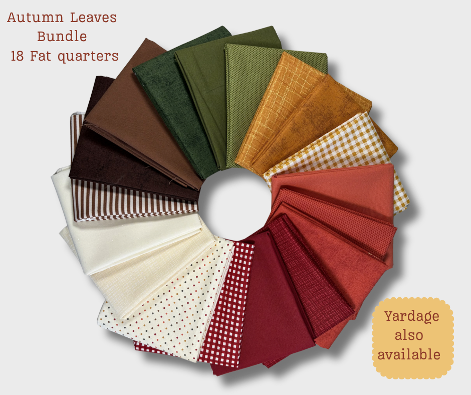 Autumn Leaves Fat Quarter Bundle – 18 Piece Fall Quilt Fabric Bundle – Warm Reds, Greens & Golds – Coordinating Cotton Fabrics for Quilting