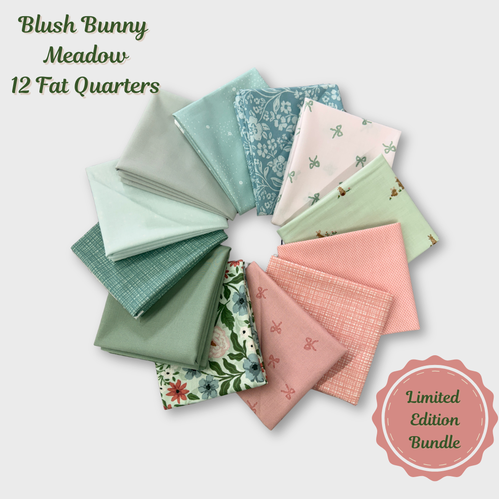 Blush Bunny Meadow Fat Quarter Bundle – 12 Piece Curated Spring Fabric Bundle – Sweet Cottontails Coordinating Fabrics