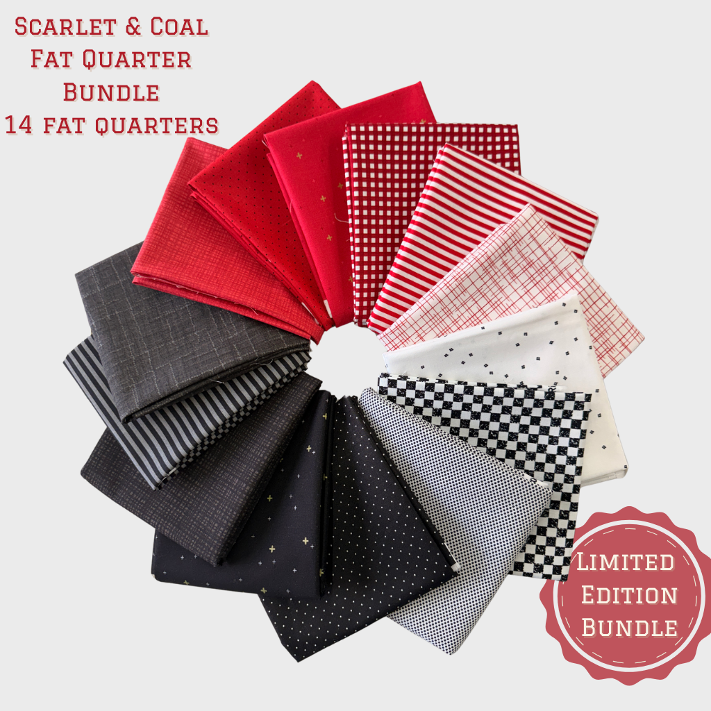 Scarlet and Coal Fat Quarter Bundle – 14 Piece Red, Black & White Quilting Fabric Bundle – Classic Game Day Palette