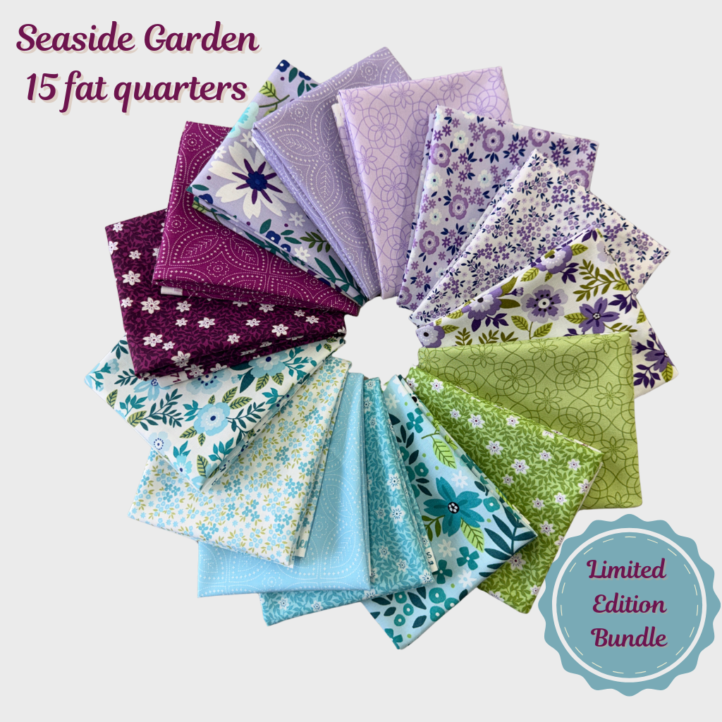 Seaside Garden Fat Quarter Bundle – 15 Piece Benartex Fabric Bundle – Purple, Aqua & Green Floral Quilting Fabrics