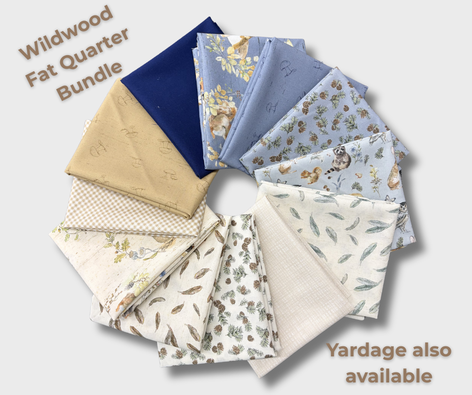 Wildwood Fat Quarter Bundle – Woodland Blues & Neutrals Fabric Bundle – 12 Piece Coordinating Quilt Cotton Set